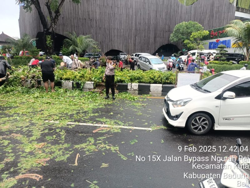 Denpasar.newsline.id – Pada hari Minggu, 9 Februari 2025, sekira pukul 11.30 sebuah pohon santen tua tumbang di Jalan By Pass Ngurah Rai Kuta, tepatnya di depan Krisna Oleh-Oleh. Kejadian ini disebabkan oleh hujan deras disertai angin kencang yang melanda kawasan Kuta. Pohon yang sudah berusia puluhan tahun itu jatuh melintang menutupi sebagian besar jalan raya, mengakibatkan kemacetan dan mengganggu kelancaran lalu lintas.