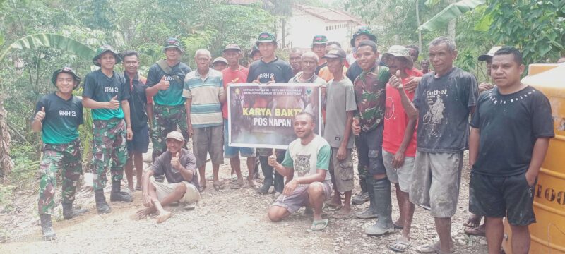 Newsline.id – Pemerintah Desa Banain B, Kecamatan Bikomi Utara, Kabupaten Timor Tengah Utara (TTU), menggandeng personel TNI dari Satgas Pamtas RI–RDTL Sektor Barat Pos Napan dalam pembangunan rabat jalan desa sepanjang 116 meter. Pembangunan ini menjadi bagian dari program peningkatan infrastruktur guna memperlancar akses masyarakat dan mendorong pertumbuhan ekonomi di wilayah perbatasan.